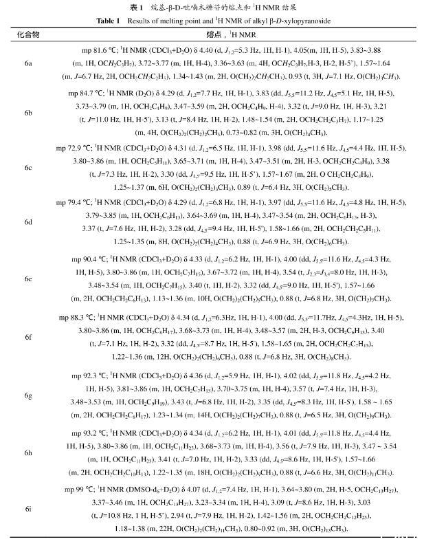 表1烷基-β-D-吡喃木糖苷的熔点和1H NMR结果