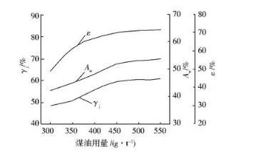 试验条件:常温(25℃)条件下,矿浆浓度为90 g/L,起泡剂用量为150 g/t,通过改变煤油用量考察其对煤泥浮选效果的影响,相同条件下进行3次试验后取平均值,试验结果如图3所示。