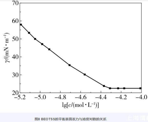 图8 BEOTSS的平衡表面张力与浓度对数的关系