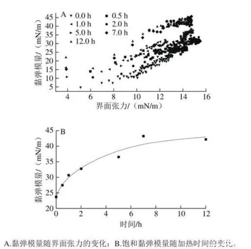 图4纤维化过程中β-乳球蛋白在油/水界面的扩张流变学特性