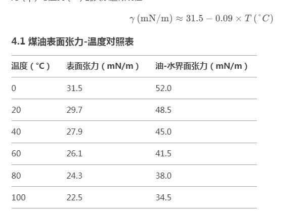 煤油的界面张力多少合适,煤油表面张力与温度对照表