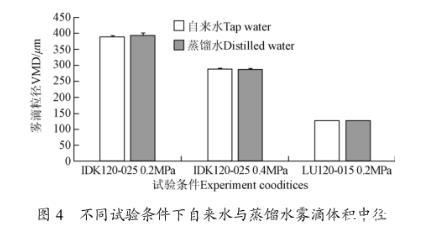 3.1自来水与蒸馏水雾滴体积中径分析
