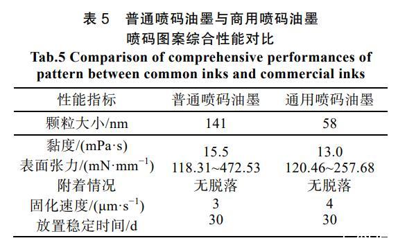 表5普通喷码油墨与商用喷码油墨喷码图案综合性能对比