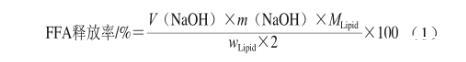式中:V(NaOH)为消耗NaOH的体积/mL;m(NaOH)为NaOH浓度/(mol/L);wLipid为消化反应中最初的油脂的质量(194 mg);MLipid为中链甘油酸酯的摩尔质量(500 g/mol)。
