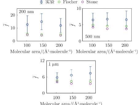 2)在LE相表面结构均匀的膜上,颗粒阻力系数等于水动力学阻力系数与热力学毛细波界面扰动表面张力阻力系数之和。其中,界面扰动表面张力需体现膜的黏弹性及微纳尺度,因此加入了黏弹性项以及热力学毛细波波数项。利用热力学毛细波波长拟合实验测量值发现,约等于膜内主要成分DPPC磷脂分子的平均间距,符合热力学界面扰动的理论描述。