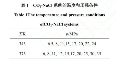 本文根据Chalbaud等对CO2-NaCl系统大范围温度及压强下的IFT实验研究结果,选择了温度及压强范围为343~373 K和6~35 MPa的CO2-NaCl系统为研究对象。具体工况参数列于表1。