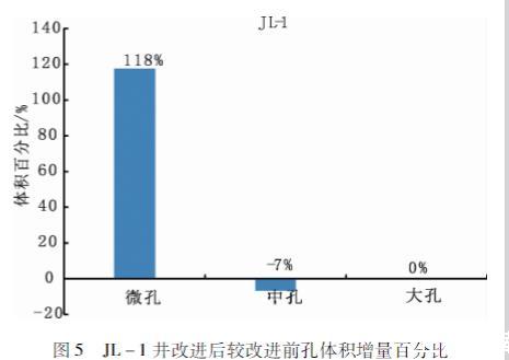 用参数校正后的方程处理数据发现样品微孔孔体积占比增加,较原始方程处理得到的结果增加了118%;而中孔孔体积占比减小,较原始方程处理得到的结果减小了7%;大孔孔体积占比不变。用改进后的Washburn方程对松辽盆地青山口组JL-1、JL-3、SL1-9、SL1-13井的泥页岩样品的数据处理得出:该地区主要以微孔、中孔为主,发育有小部分大孔。统计压汞实验数据发现微孔占比平均12%左右,中孔占比平均为86%,大孔占比平均为2%。依据实验数据评估,松辽盆地青山口组地区油气主要储集在中孔里面。因此,提高微小孔(<50 nm)烃源岩储集层的勘探开发有十分重要的意义。