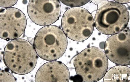 的水溶液,水凝胶前驱液为3%果胶(酯化度30%苹果皮果胶,烟台安德烈果胶有限公司)水溶液,稳定连续生产直径为600μm的水凝胶微球,如图1所示,避免了液滴微流控技术中常见的漏液、管路堵塞或液滴融合等隐患。