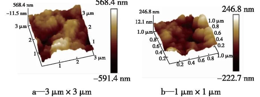 众所周知,表面微结构形貌在增强表面超疏性能方面起着重要作用。图2是超疏涂层的SEM图像,图3是超疏涂层的AFM图像。