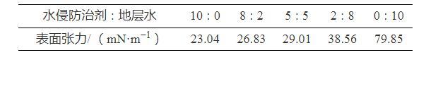 表1水侵防治剂与地层水混合后的表面张力值