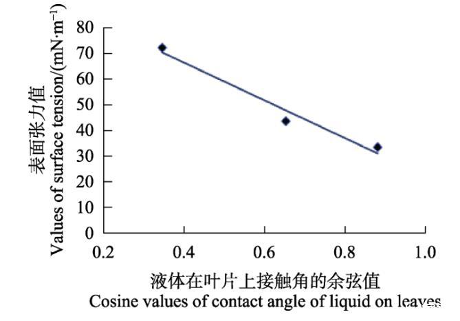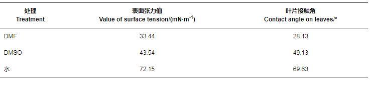 表1液体的表面张力值及其在芒果叶片上的接触角