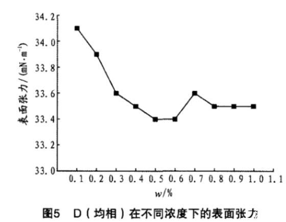 D(均相)在不同浓度下的表面张力见图5。