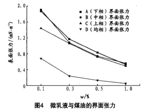 微乳液与甘油的界面张力见图4。