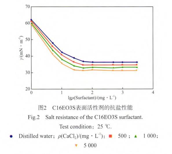 3)C16EO3S表面活性剂在CaCl2溶液中具有良好的活性,抗盐能力较强。