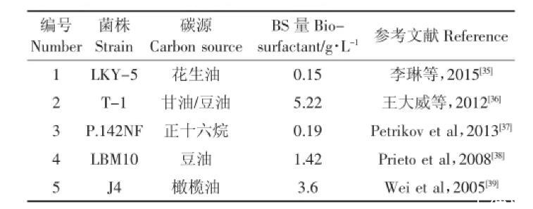 表6几株铜绿假单胞菌合成生物表面活性剂的产率比较