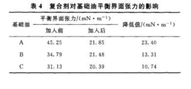 表4复合剂对基础油平衡界面张力的影响