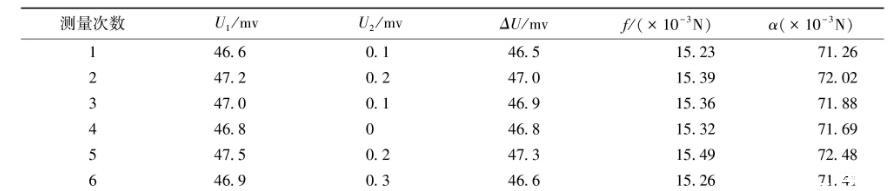 表2原有金属吊环测量液体的表面张力系数数据表(水温25℃)