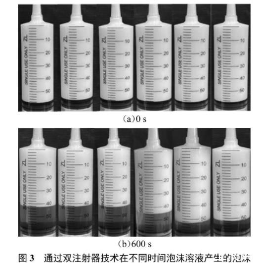 图3通过双注射器技术在不同时间泡沫溶液产生的泡沫