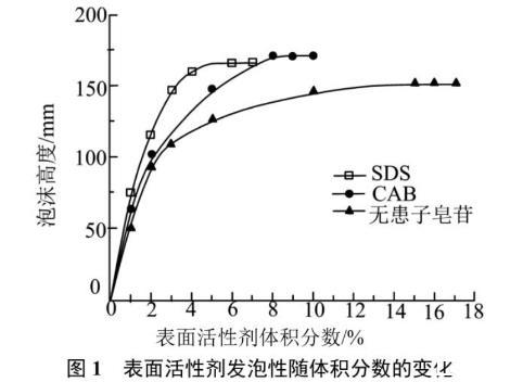 图1表面活性剂发泡性随体积分数的变化