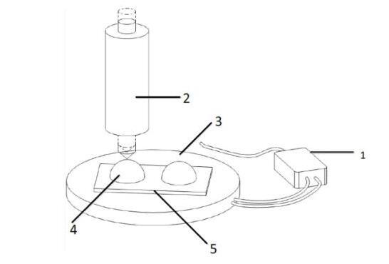 (2)通过具有自动回弹功能的振动触发装置使液滴发生振动,振动触发装置回弹后,液滴发生自由振动;