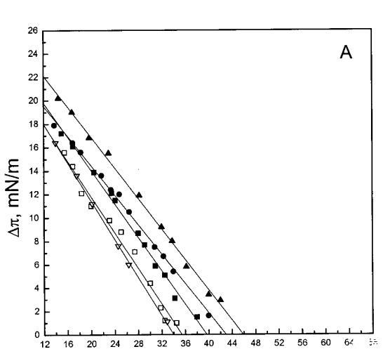 吲哚西丁的π也显着增加,显示其插入SOPC单层(图1b)。然而,吲哚青素的膜活性明显高于magainin 2,具有πc≈65mN/m,用于SOPC胶片。与magainin 2类似,单层中POPG含量的增加增强了吲哚青霉素的渗透,增加了∆π低于~38 mN/m,与肽和脂质单层之间的静电相互作用一致。然而,在后一个表面压力值之上,吲哚西丁引起的π增量被POPG减弱。因此,与magainin 2相反,在存在POPG的情况下,πc减小(图1c),在XPG=0.4时从~65 mN/m(对于SOPC单层)变为~50 mN/m。在SOPC单层中,吲哚西丁增加的π也被胆固醇(X=0.1)增加,而πc降低至~54 mN/m。图1所示的magainin 2和吲哚西丁的模式非常不同,后一种肽的明显交叉点为~38 mN/m。