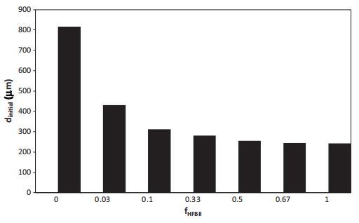 图8给出了以与图3相同的HFBII:WPI比率制备的两种泡沫的初始气泡尺寸。最重要的观察结果是,少量HFBII(来自fHFBII 0.03)在很大程度上影响泡沫的初始气泡尺寸。此外,似乎从WPI主导向HFBII主导的行为转变发生在fHFBII∼=0.2,对应于朗缪尔槽中吸附层中观察到的转变(图6)。
