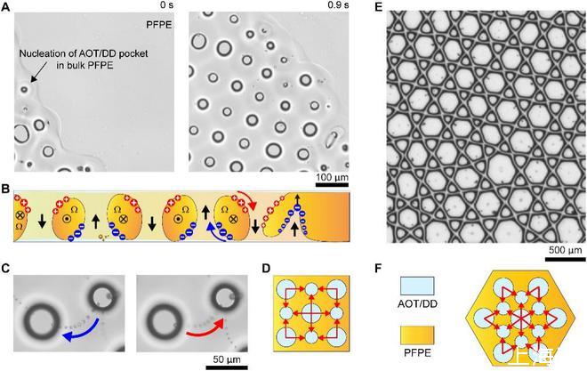 在这项研究中,团队将油与多种具有不同介电常数和电导率的液体混合后,通过施加电场,界面发生剪切,会脱离平衡状态,产生有趣的结构。液滴形成了许多出乎意料的图案,可被控制成为方形或六边形,每条边都是笔直的,这在自然界中几乎是不可能的。