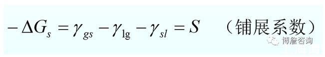 固体浸于液体中的过程称为浸湿。此过程是固气界面被固液界面取代,气液界面无变化,此过程自由能变化为