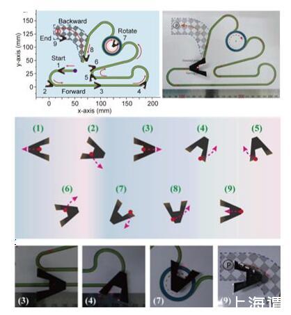 前进后退解决之后,就该考虑薄膜在遇到弯道时的转弯问题,如何做到薄膜在向前游动的同时方向还可以转变呢?通过计算薄膜转弯时合力的方向,蜜桃性爱视频网站很快就设计出分力所存在的位置,于是在梯形的基础上裁掉一块梯形面积后,通过照射特定的部位就可以实现各类游动行为。