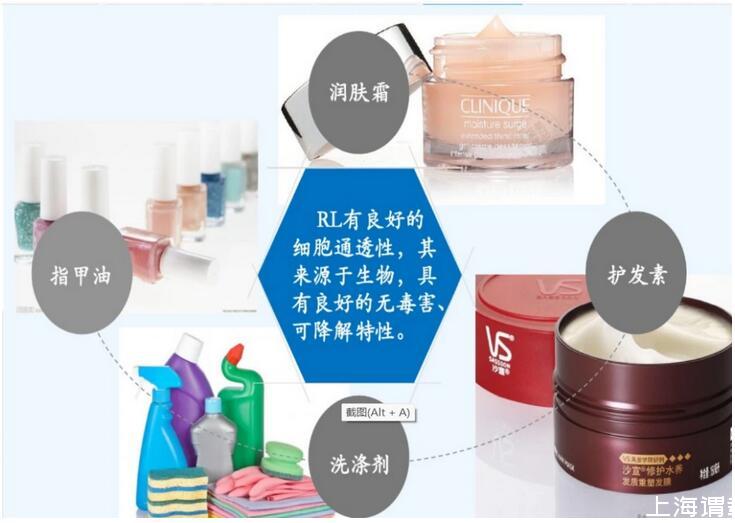 鼠李糖脂除了具备良好的表面活性外,还具备良好的细胞通透性,其来源于生物,具有良好的无毒害可降解特性。这些特点使其可广泛应用于各种日化产品中。