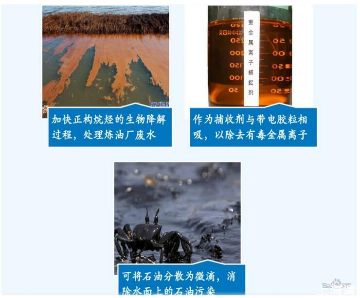 目前它比较广泛的应用于石油工业、绿色农业和生态环境方面,此外在食品行业、化妆品、医疗方面也有较大的应用潜力。
