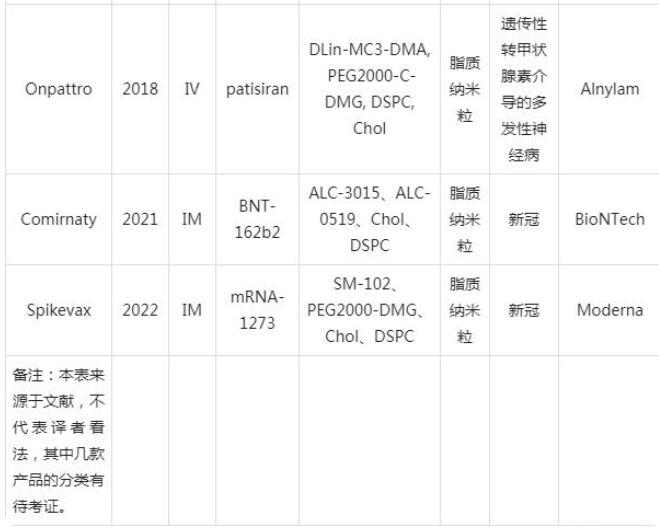 表2临床试验中的脂质纳米粒mRNA药物和疫苗