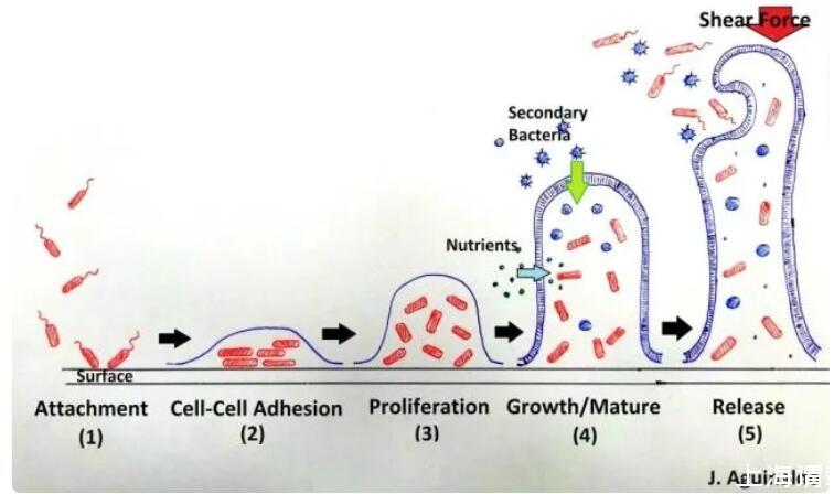 生物膜对微生物起保护作用,并会持续接纳新的浮游微生物。传统的清洁、消毒方式可以杀灭生物膜下部分微生物,但无法有效去除由胞外聚合物构成的生物膜。如果在清洁消毒后,系统中微生物依然频繁超标,很可能已存在生物膜污染。