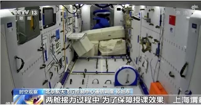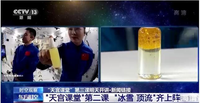 在约45分钟的授课中,航天员演示了微重力环境下太空“冰雪”实验、液桥演示实验、水油分离实验、太空抛物实验,讲解了实验现象背后的科学原理,还展示了部分空间科学设施。