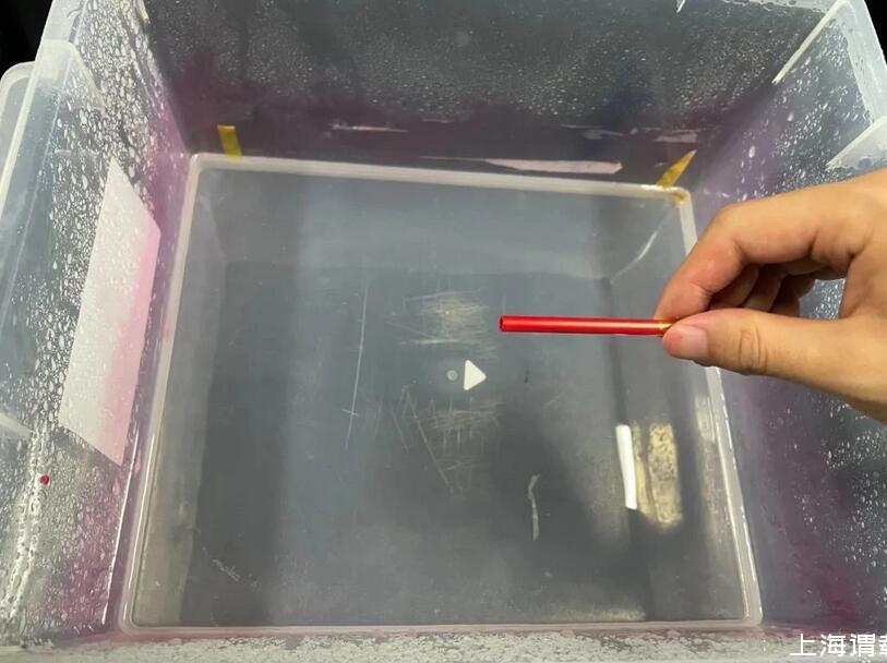 将笔芯里面的油墨滴到水里面,观察油墨的变化。