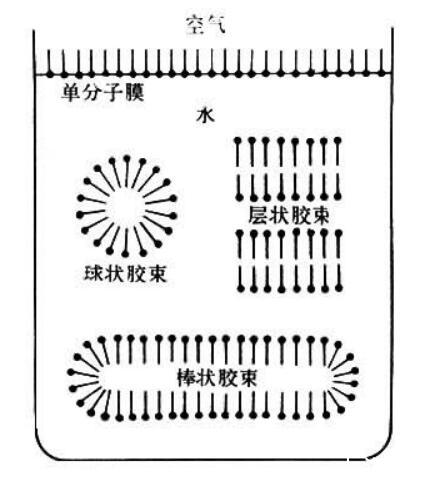 图1含有表面活性剂的溶液中缔合形成的胶团或胶束过程的示意图