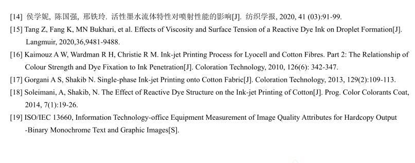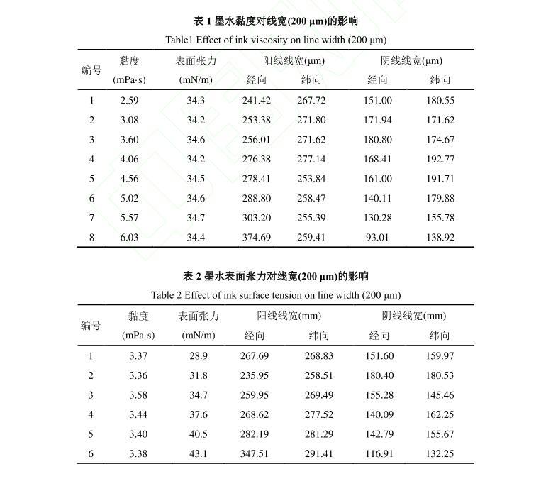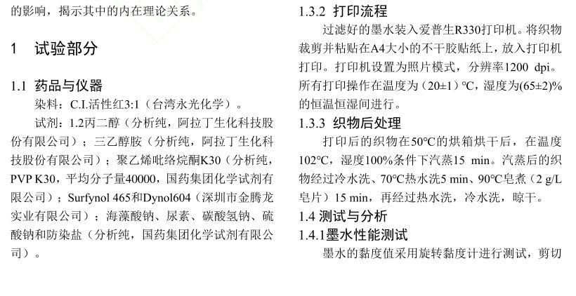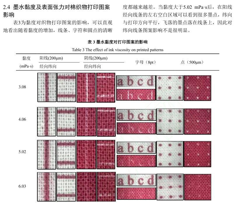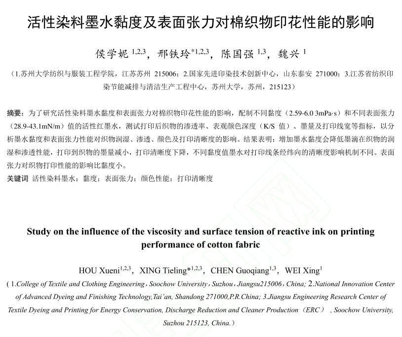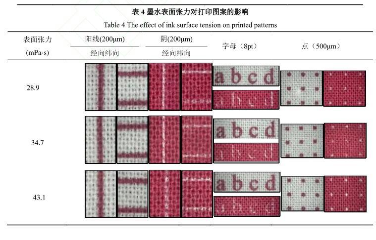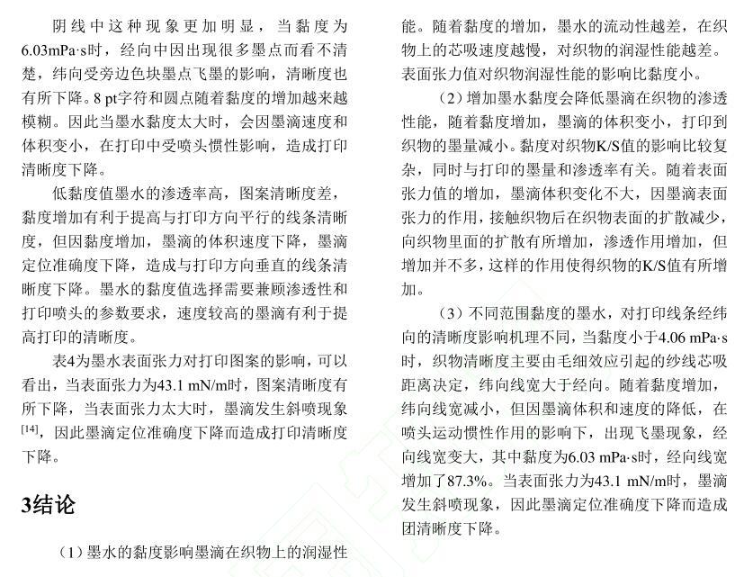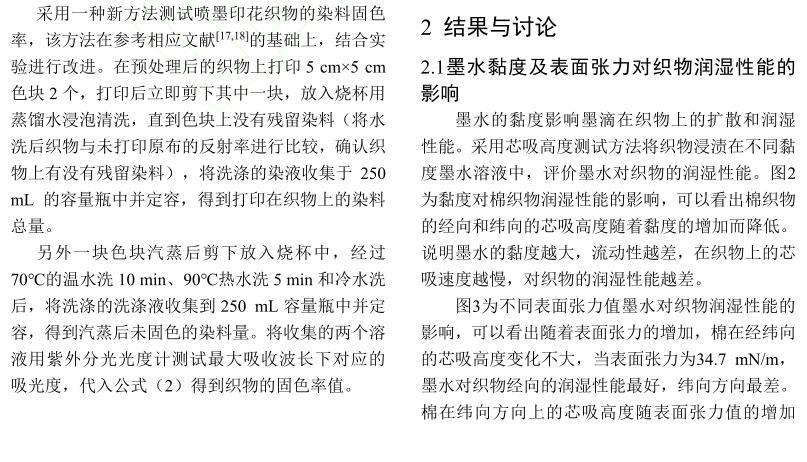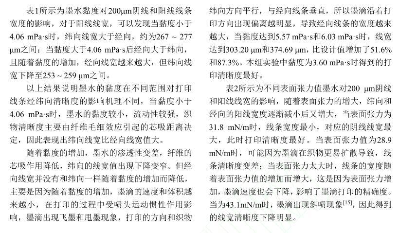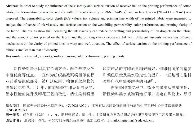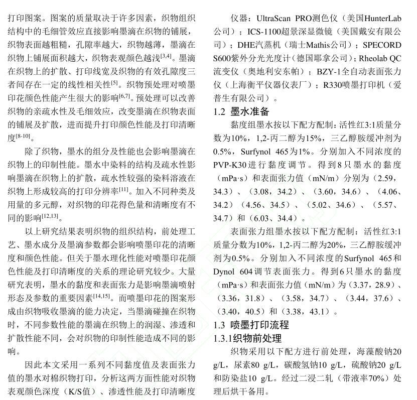 活性染料墨水黏度及表面张力对棉织物印花性能的影响