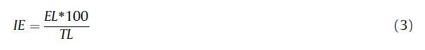 拉伸强度(TS)和断裂伸长率(%E)使用智利官方标准方法(NCh1151,1999)测定,该方法等效于ISO R1184-1970标准方法。薄膜样品被切成10毫米?50毫米的条带,并使用双夹钳以30毫米的间隔以20毫米/分钟的测试速度进行测试。记录曲线载荷与伸长的关系,直到达到断裂伸长率。TS以MPa表示,并通过将最大载荷(N)除以横截面积(m2)计算得出。最大断裂伸长率或%E是通过将断裂时的伸长率除以样品的初始标距并乘以100来确定的。报告的TS和%E值是对每种类型的样品进行的至少四次测量的平均值电影。