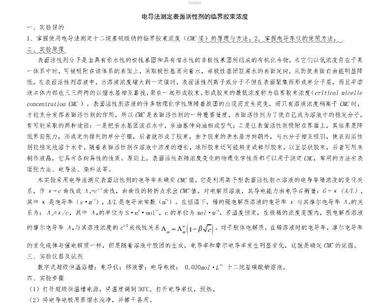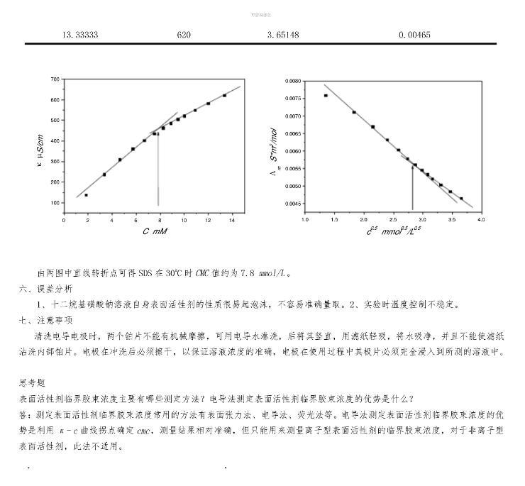 表面张力法和电导法对比测定表面活性剂临界胶束浓度
