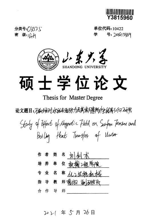 经过实验探究表明,磁场可以降低水的表面张力,本文利用多种实验仪器,系统的探究了磁场对水的表面张力的影响规律,并将通过磁化得到的磁化水(Magnetized Water,简称MW)作为沸腾工质进行沸腾换热实验,探究磁化对水的沸腾换热特性的影响。首先,作者介绍了现有的针对水的沸腾换热强化方法,主要分为在水中添加SFC得到溶液和添加纳米颗粒形成纳米流体两种,但SFC种类繁多,且对于水的沸腾换热特性的改变并不都是有利的,而纳米流体方法则由于纳米流体的稳定性问题,虽然研究较多,但仍然无法避免纳米颗粒的团聚沉积所带来的的设备损耗维护问题。