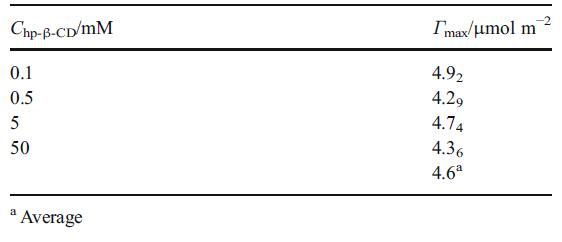 表1 不同hp-β-CD浓度下NP的表面过量(Γmax)值