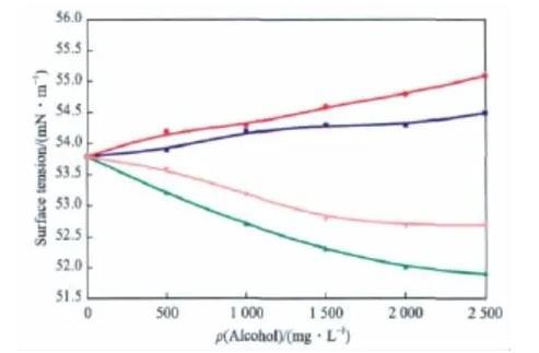 不同的醇对BHEC水溶液表面张力的影响