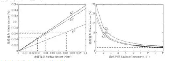 图2基质吸力随表面张力和曲率半径的变化曲线