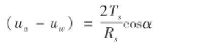 式中,(ua-uw)为基质吸力,Pa;Ts为水—气分界面的表面张力,N m-1;Rs为曲率半径,m;α为接触角,°。