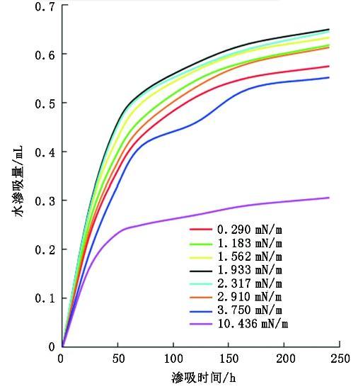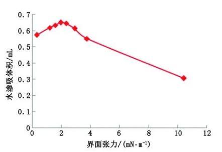 图2界面张力对最终水渗吸体积的影响(试验结果)